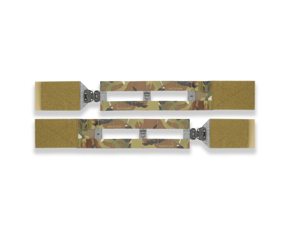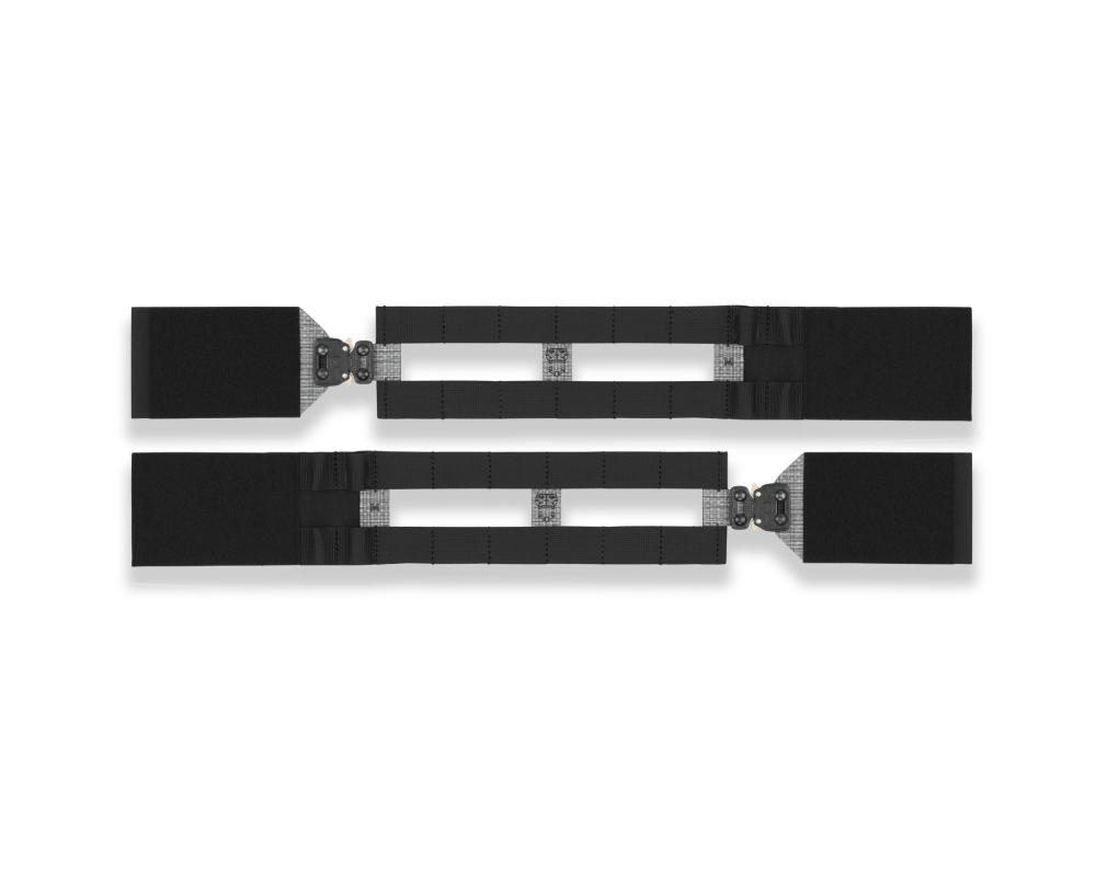 Pasy boczne Skeletal 3” Cummerbunds GPC™ 2.0. Dedykowane do lekkich konfiguracji, zapewniają maksymalną swobodę ruchów. Zapinane w przedniej części za pomocą klamer Cobra FM 25 oraz w tylnej za pomocą paneli rzep. Dzięki usztywnionej konstrukcji, zapewniają stabilność przenoszonej balistyki oraz wyposażenia. Możliwość dwustronnego montażu kieszeni i akcesoriów w standardzie PALS.