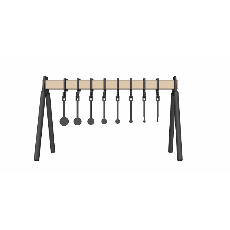 Stojak wykonany z czarnej stali wraz z zawieszkami z blachy Hardox 500 10 mm. Przeznaczony do użytku z amunicją 22 rimfire,9mm i 40, 223Rem, 7.62x39mm. Prosta konstrukcja umożliwia łatwy montaż i rozkładanie. Cele o wymiarach od 1/4 cala do 2 cali – 8 sztuk małych tarcz. Haki przystosowane do celów z otworem kwadratowym 10 x 10 mm.