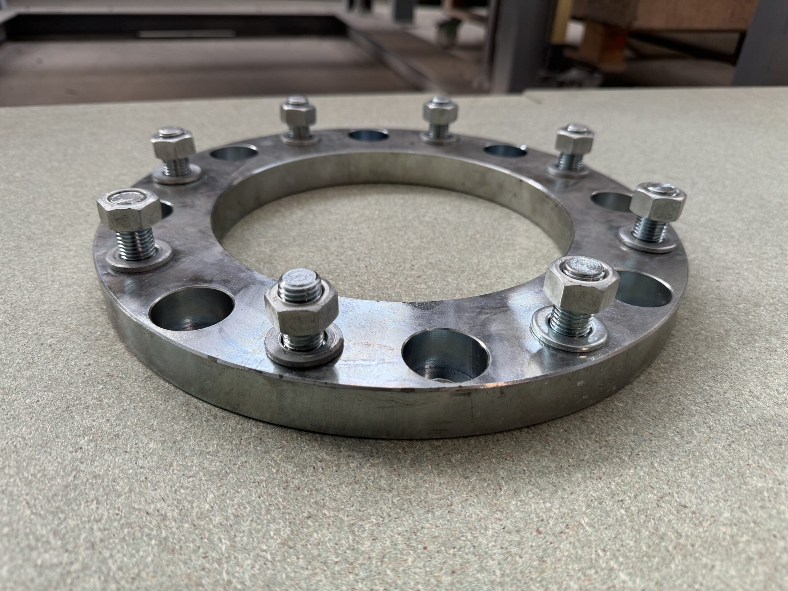 Kołnierze modernizacyjne zaprojektowane tak, aby umożliwić podłączenie zaworów wybuchowych i zaworów nadciśnieniowych do istniejących ścian w obwodzie schronu/przestrzeni chronionej. Kołnierze są połączone ze ścianą za pomocą specjalnych kotew betonowych i mają wstępnie zainstalowane śruby do mocowania zaworów za pomocą nakrętek.