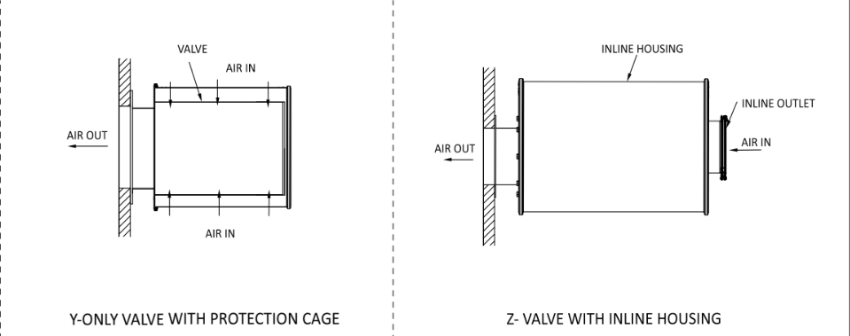 * Zawory strumieniowe BVNС mogą być wyposażone w specjalną obudowę (do podłączenia do kanału powietrznego, kołnierze, filtr wstępny, szybkozłącza i inne)