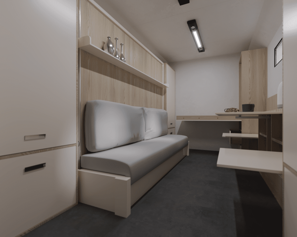 Podstawowy model schronu ma wymiary 4,5 m x 6,0 m i zapewnia miejsce dla 35–50 osób, gwarantując im komfortowe i bezpieczne warunki pobytu. Każdy schron wyposażony jest w: